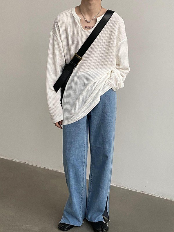 Camiseta de manga larga de gofre simple para hombre