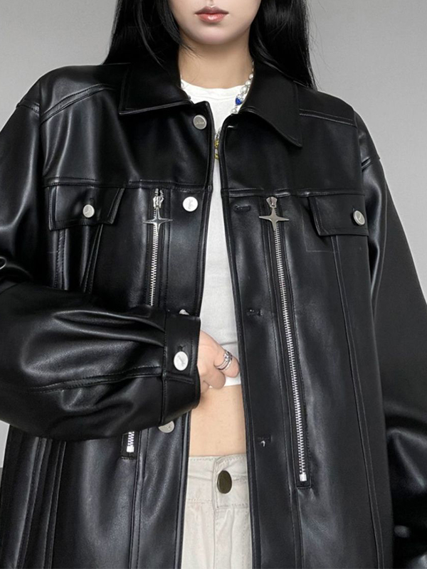 Chaqueta de cuero sintético estilo retro americano