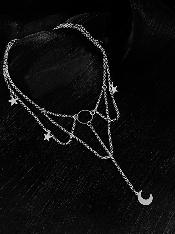 Gargantilla de cadena con colgante de estrella y luna