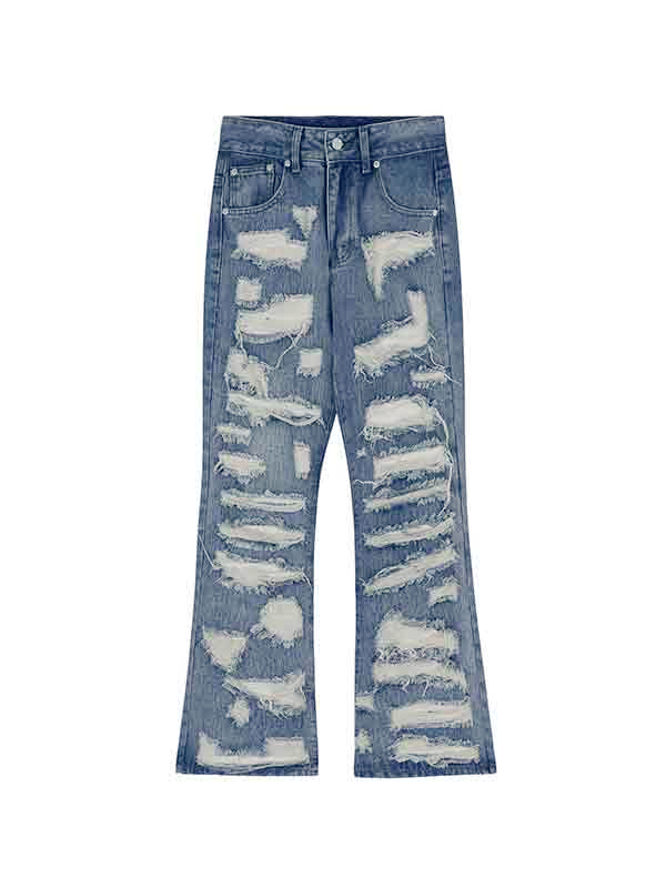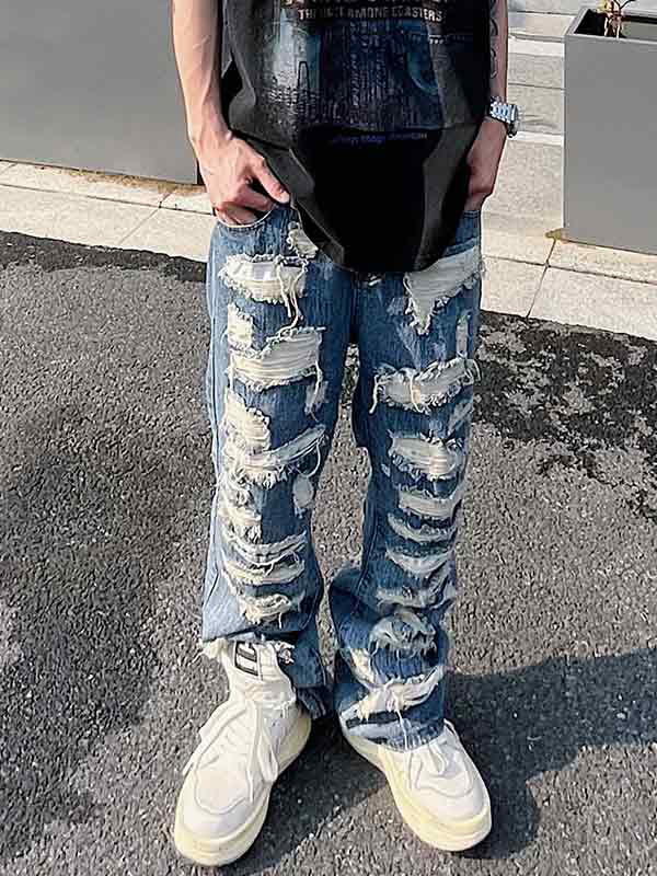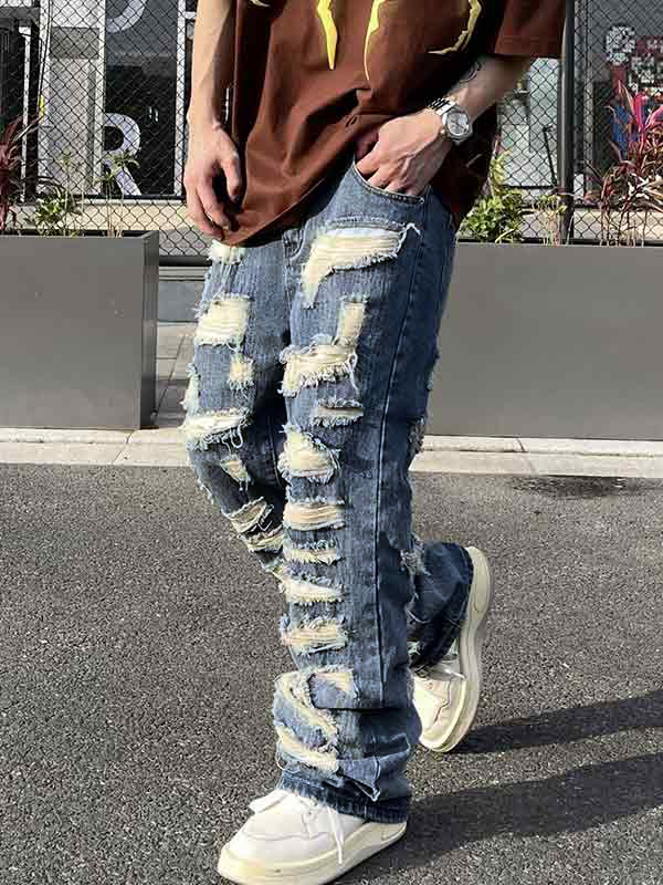 Jeans sueltos acampanados rasgados lavados para hombre