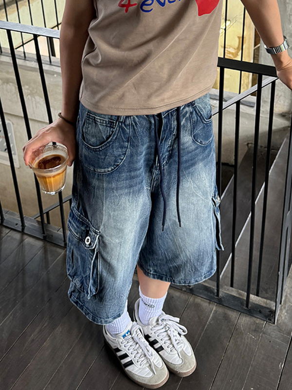 Shorts vaqueros holgados lavados estilo americano