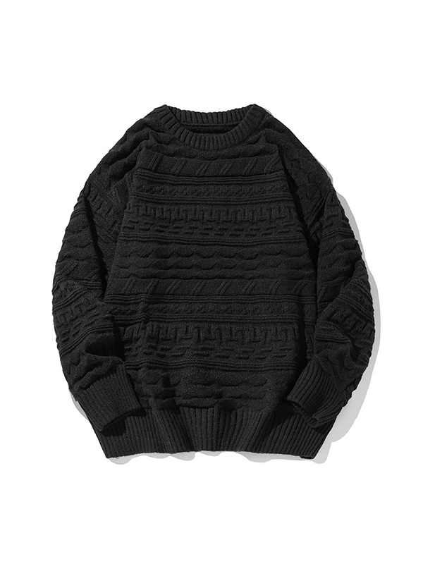 Suéter retro de cuello redondo con textura de cable