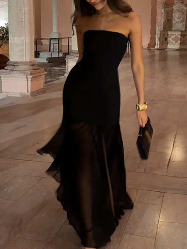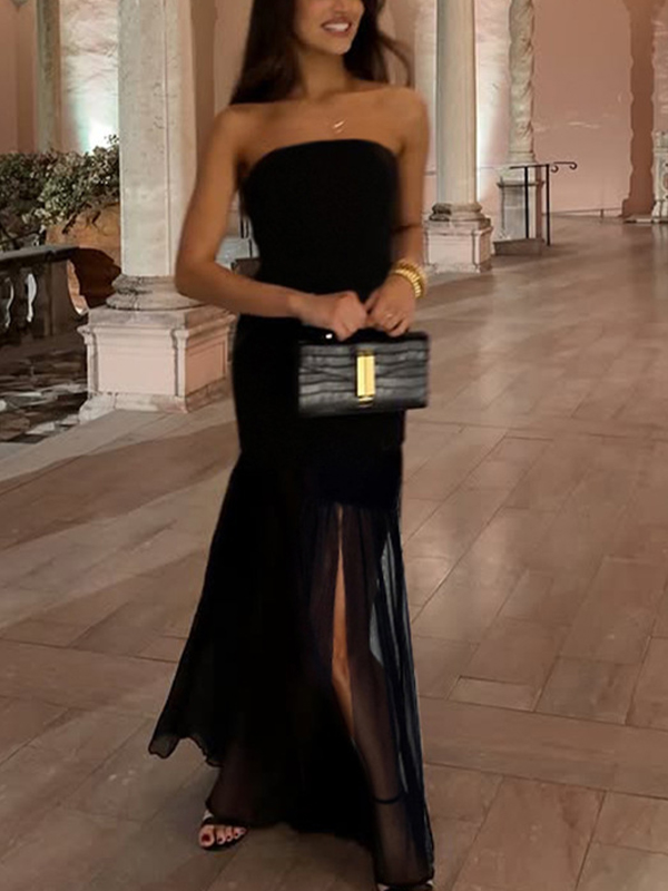 Sé el primero en valorar “Vestido largo con abertura alta y retazos de malla”