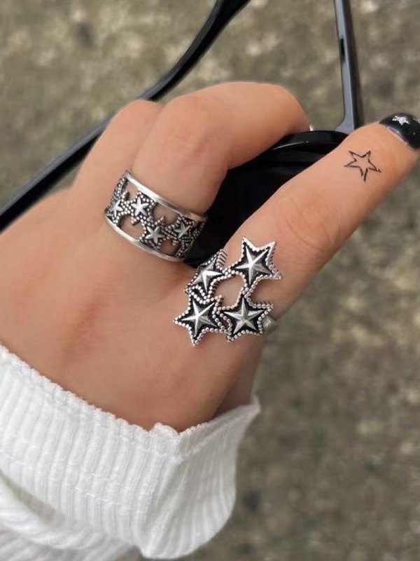 Anillo de plata con patrón de estrella vintage