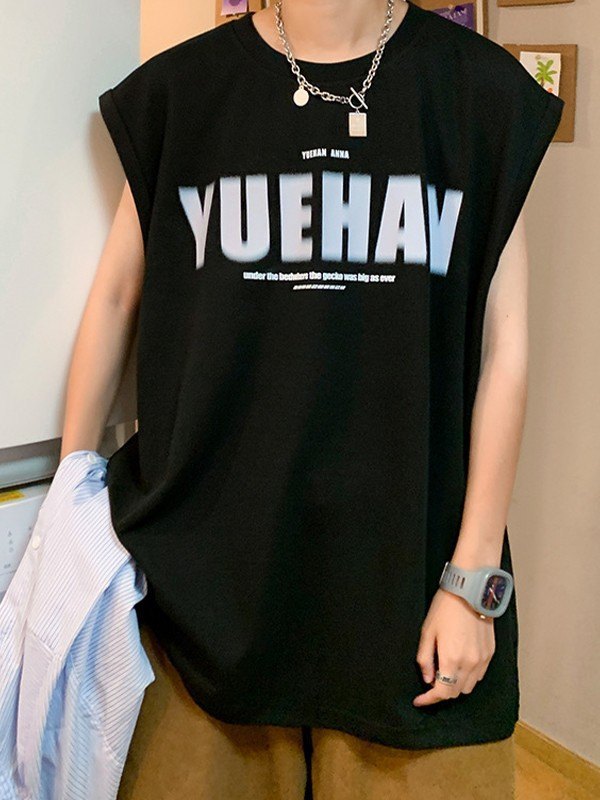 Chaleco gráfico con letras negras para hombre