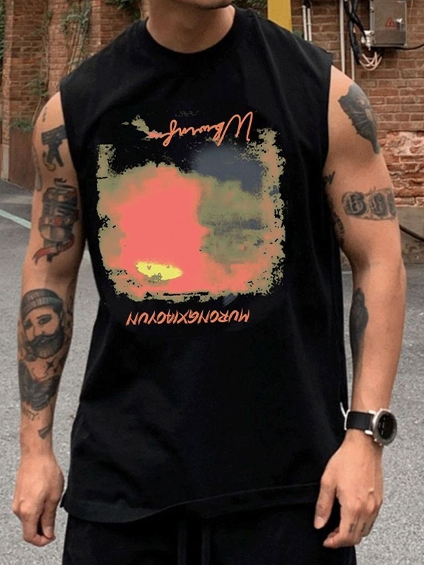 Chaleco con estampado de letras desgastadas retro para hombre