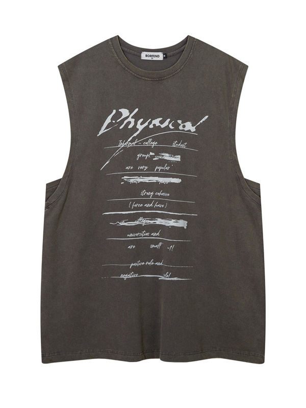 Chaleco con estampado de letras desgastadas y lavadas vintage para hombre